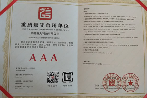 公司所有產品均通過ISO9001 **質量認證,2014年更獲得了第三屆國內金屬磨料行業具有影響力品牌-華尊獎